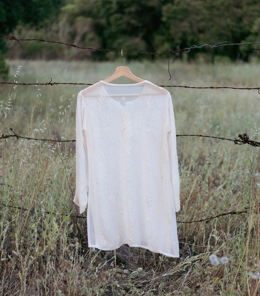 Crafted in pure georgette with intricate embroidery, Paloma offers elevated tunics in featherlight fabrics. Each piece includes a matching slip for comfort and effortless layering—where luxury meets ease.